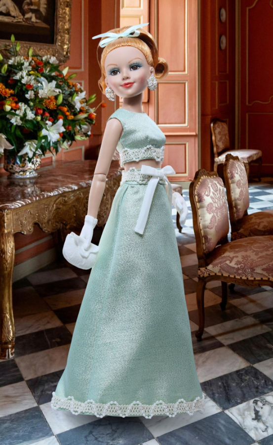 | Rosalind | 2013 | 50 | $399.00 | American Model | Great Eras of Fashion | UFDC - Washingon D.C - Centerpiece | T13AMSD03 | 22" Articulated, Cameo | Wheat blonde updo | Green inset w/applied lashes | |